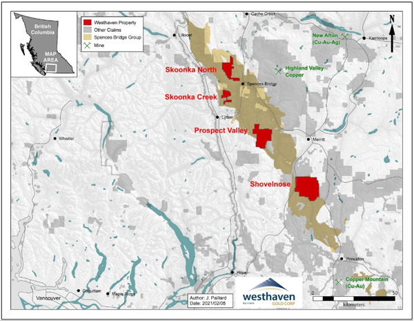 Westhaven is a gold-focused exploration company advancing the high-grade discovery on the Shovelnose project in Canada’s newest gold district, the Spences Bridge Gold Belt. Westhaven controls 37,000 hectares (370 square kilometres) with four 100% owned gold properties spread along this underexplored belt. The Shovelnose property is situated off a major highway, near power, rail, large producing mines, and within commuting distance from the city of Merritt, which translates into low-cost exploration. Westhaven trades on the TSX Venture Exchange under the ticker symbol WHN. For further information, please call 604-681-5558 or visit Westhaven’s website at www.westhavengold.com.