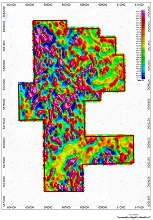 In November, 2018 a helicopter-borne high resolution aeromagnetic survey was completed over both properties covering a combined 8,951 hectares. The survey block was flown in a systematic low-level grid pattern at 75-metre line spacing over the Skoonka property and 100-metre line spacing over the Skoonka North property for a total of 1,186 line kilometres. The purpose of these programs is to increase property coverage and to help uncover favourable structures. It is important to determine structural controls that may be associated with zones of gold-silver mineralized veins.