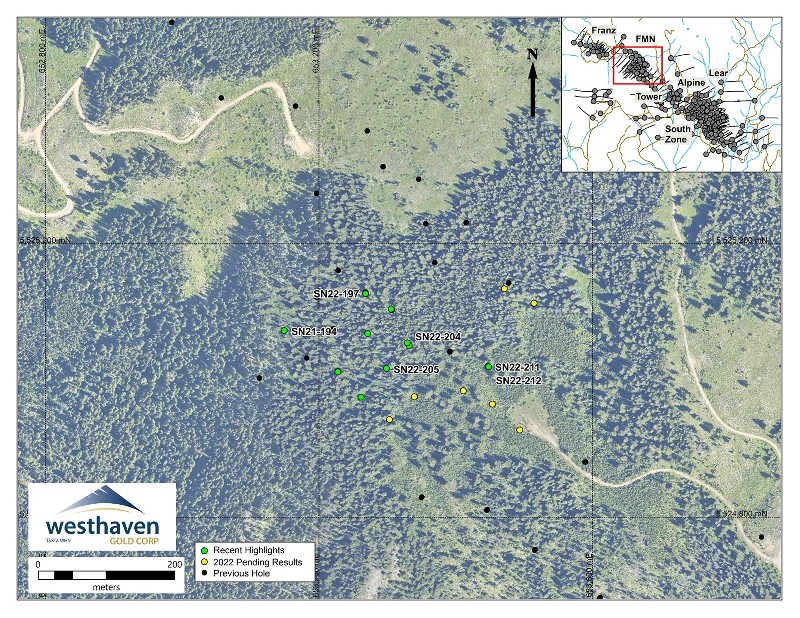 Westhaven is reporting assays for 22 holes from its ongoing drill campaign at Shovelnose.