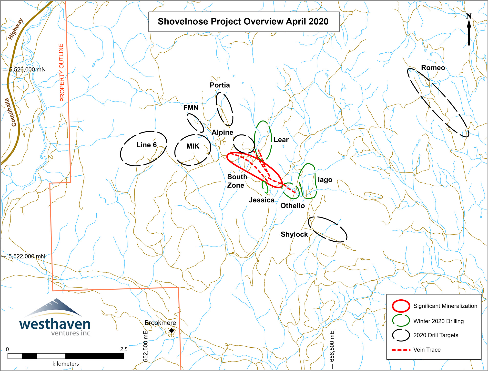 Vancouver, B.C. – April 30th, 2020 – Westhaven Ventures Inc. (TSX-V:WHN) is pleased to announce drill results from its winter drill program at its 17,623 hectare Shovelnose gold property. Shovelnose is located within the prospective Spences Bridge Gold Belt (SBGB), which borders the Coquihalla Highway 30 kilometres south of Merritt, British Columbia.
