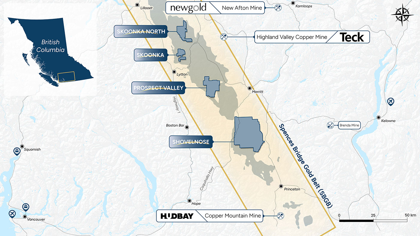 The SBGB is a 110 km northwest-trending belt of intermediate to felsic volcanic rocks dominated by the Cretaceous Spences Bridge group. These relatively underexplored volcanic rocks are highly prospective for epithermal style gold mineralization.