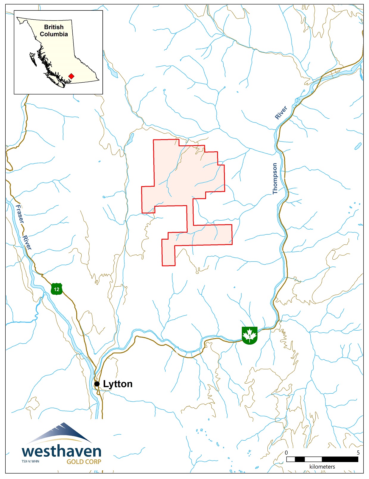 The Skoonka property is situated near the northern end of the Spences Bridge Gold Belt (SBGB), a series of Cretaceous subaerial volcanic rocks with the potential to host epithermal-style mineralization. The property is a three hour drive by car from Vancouver, situated between the communities of Lytton and Spences Bridge in south-central British Columbia approximately 10 kilometres north of the Trans-Canada Highway and the CPR Railway Line. Westhaven owns 100% interest in the 2,785 ha property, comprising 10 contiguous claims.
